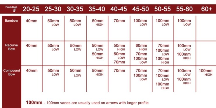Se você é arqueiro recurvo ou composto que excede 50 lbs. de peso de puxada, as vanes de 60 mm de alto perfil (HIGH) são as que melhor funcionam para você.