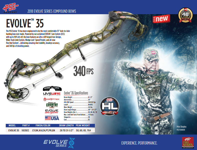A serie EVOLVE foi fabricada nos anos de 2017 a 2019 pela PSE. Este arco da imagem veio para nossa oficina para alinhar o peep na corda. Para este serviço usamos o bowpress e o hooter shooter.