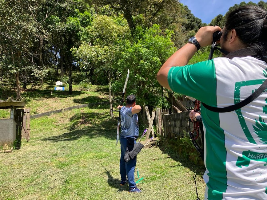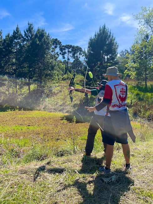 Nossos arqueiros atiraram em distâncias variadas (desta vez foi de 8 a 61 metros), com arcos tradicionais, longbows, recurvos, olímpicos e compostos! Com os diferentes tipos de arcos pudemos ver o funcionamento e as características de cada modelo em ação no campo.