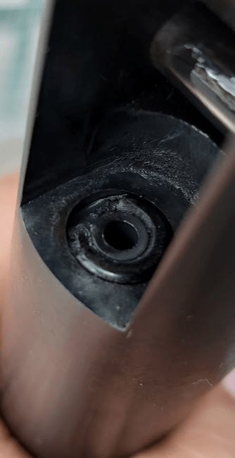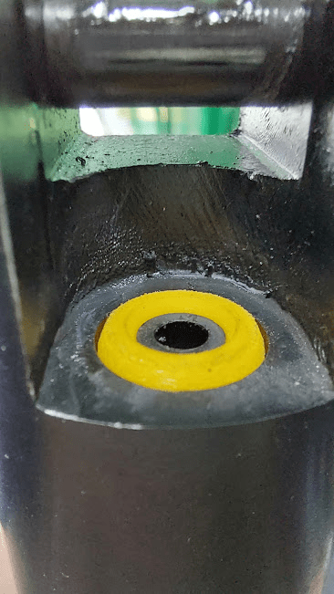 O proprietário da carabina trouxe para nossa oficina dizendo que tinha alguma coisa estranha com ela, ao fazer uma análise externa encontramos o vedante do cano estragado e ao abrir o equipamento, encontramos a bucha do pistão também com problemas.